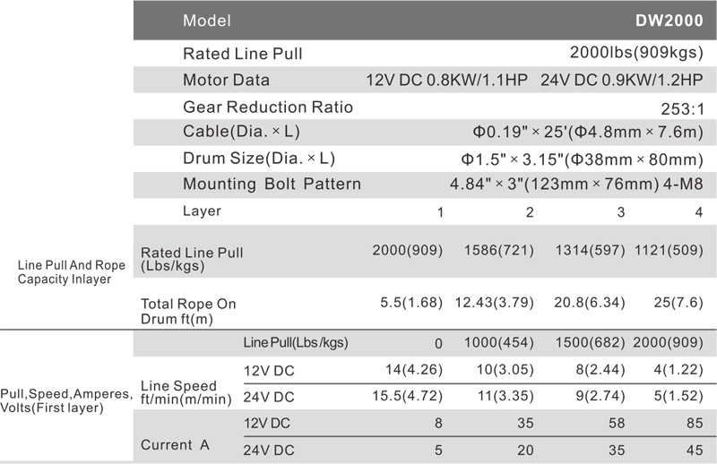 2000lb(907kg) Capacity 12V DC ATV Winch