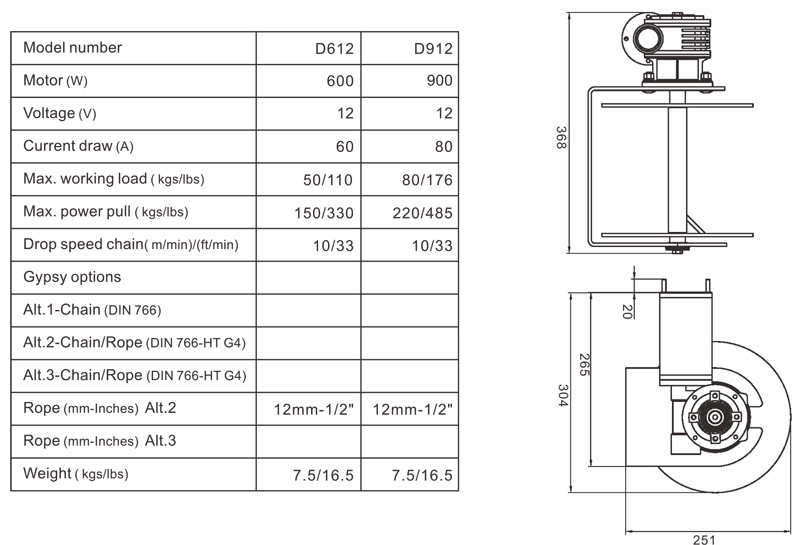 The D-series Heavy Duty Style Windlass.With parts above the deck made of high polished stainless steel 316.Powerful and compact windlass made specially for the rigid conditions of the sea.Suitable for the boat with adequate space underneath deck and with deck thickness less that 50mm(2').With motor/gear underneath deck offers this model a very smooth and silent operation.Easy to vertically install,adjustable clutch,works with